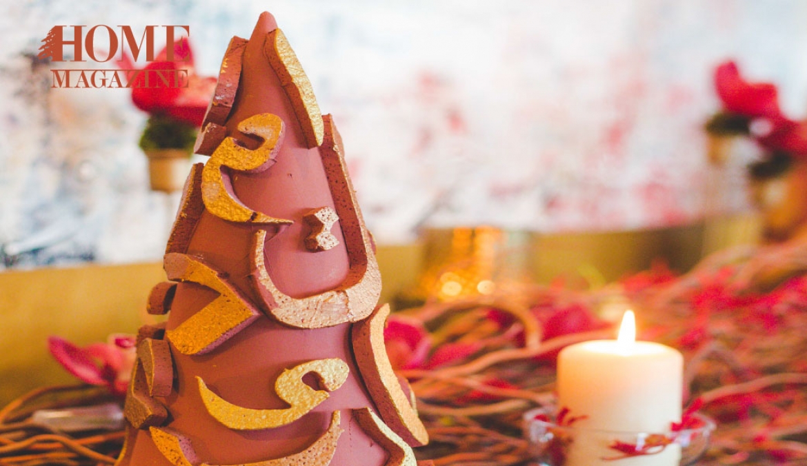 Arabesque Christmas was the main inspiration. Being from the Middle East, the land of religions, Elie Berchan was inspired to develop such a theme which includes mainly letters, candles and wood branches.