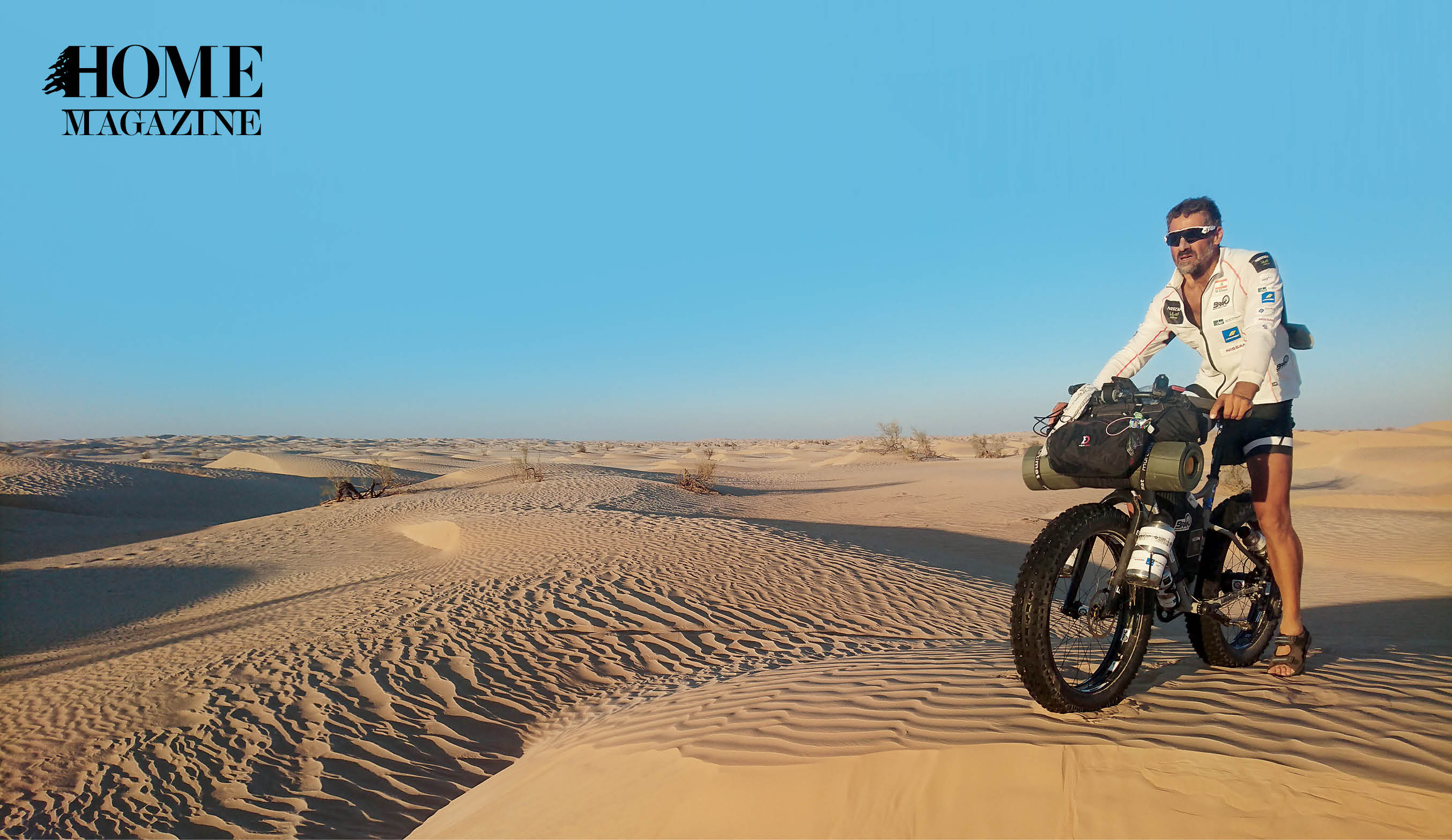 Parked in his basement workshop is the same fat bike (push bike, that is) that accompanied him on his journey across the Rub’ al Khali. “I am deeply in love with the desert,” he says. “People think the desert is monotonous but it’s not. The dunes are sculpted and re-sculpted daily, even hourly. The shades of beige, brown and grey are amazing.” On long, drawnout expeditions, Chaya rediscovered something that has been driven away from the world: silence. A passage by St. Exupery’s The Little Prince expresses his appreciation for tranquility among the dunes: “I have always loved the desert. One sits down on a desert sand dune, sees nothing, hears nothing. Yet through the silence something throbs and gleams.”
