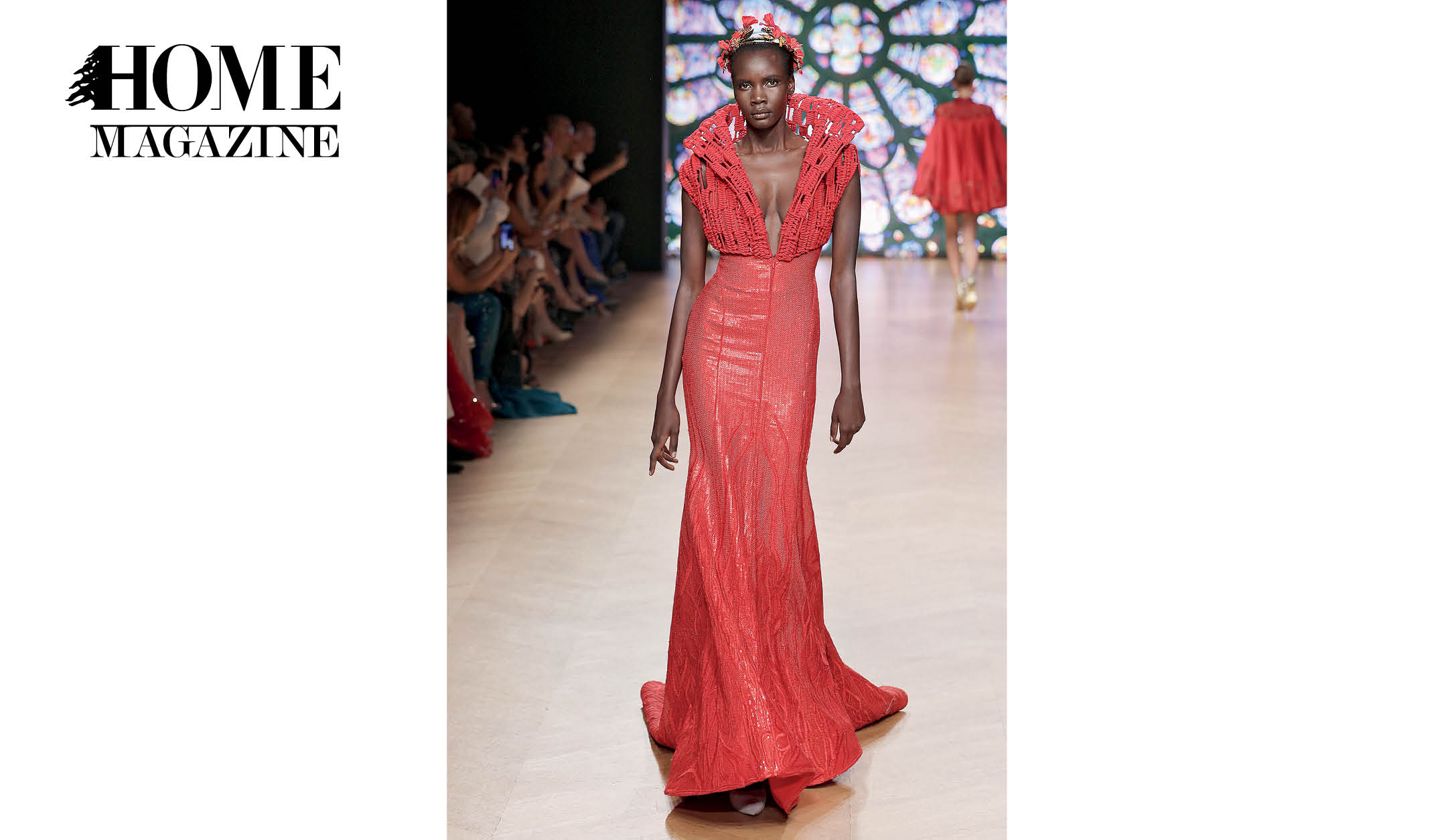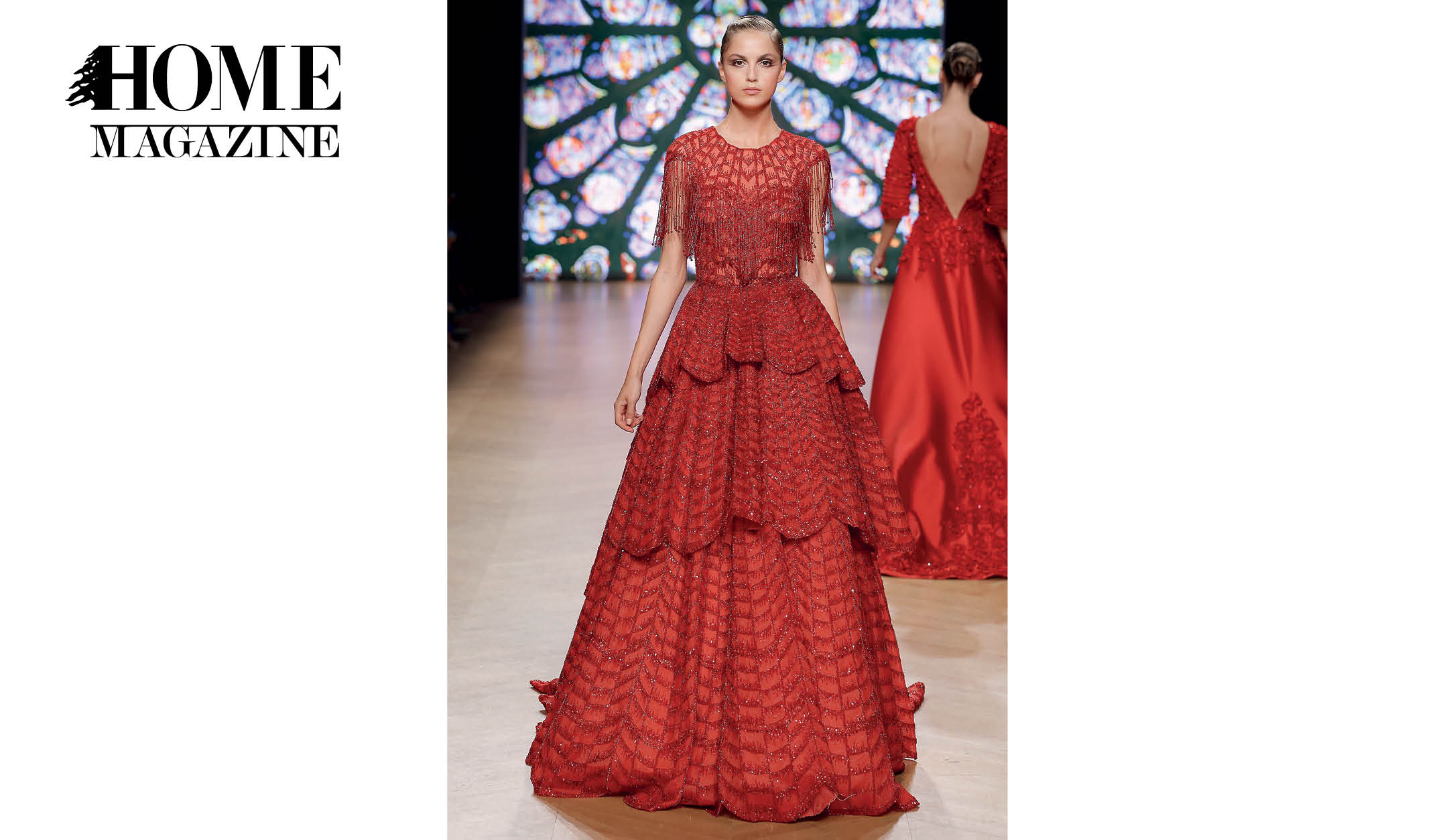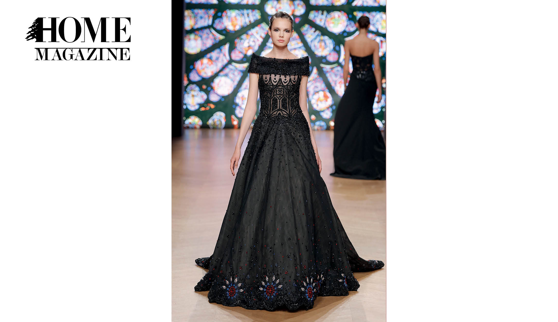 With garments made of handwoven ribbons and other complex couture materials and techniques, taking up to 600 hours to be conceptualized and manufactured, the collection tells a story inspired by the striking stained glass “narrative windows.”