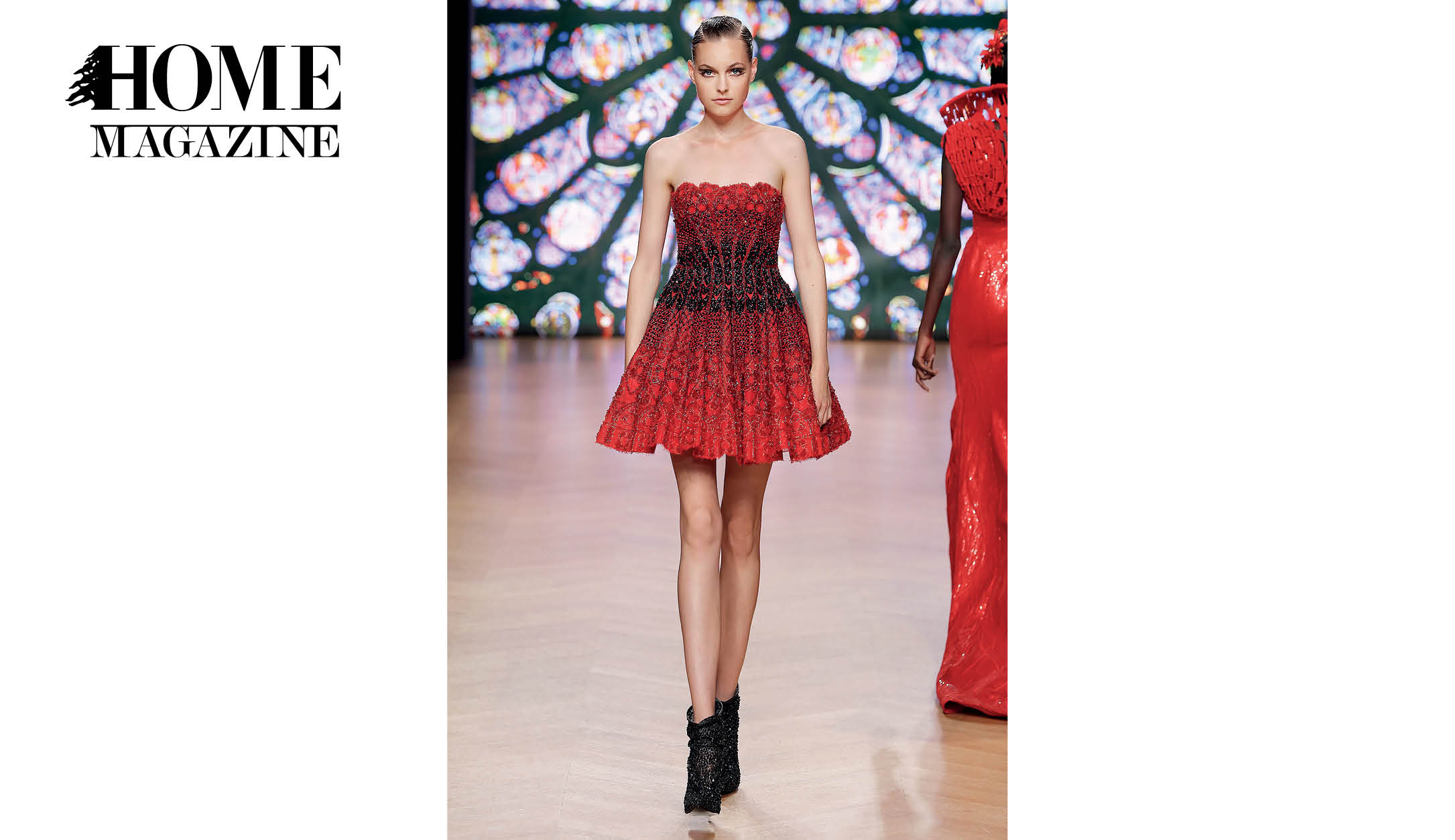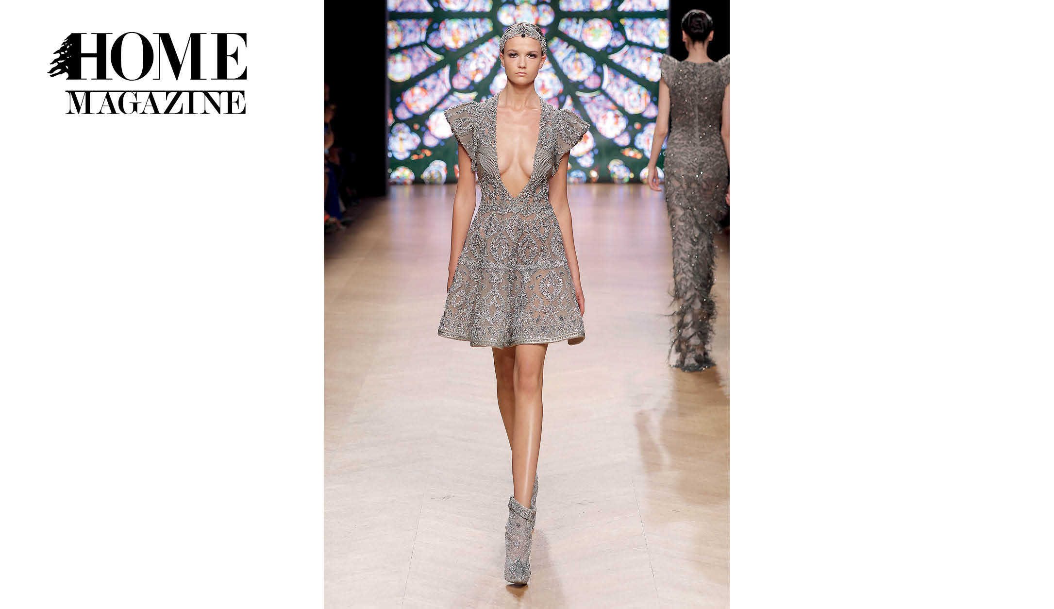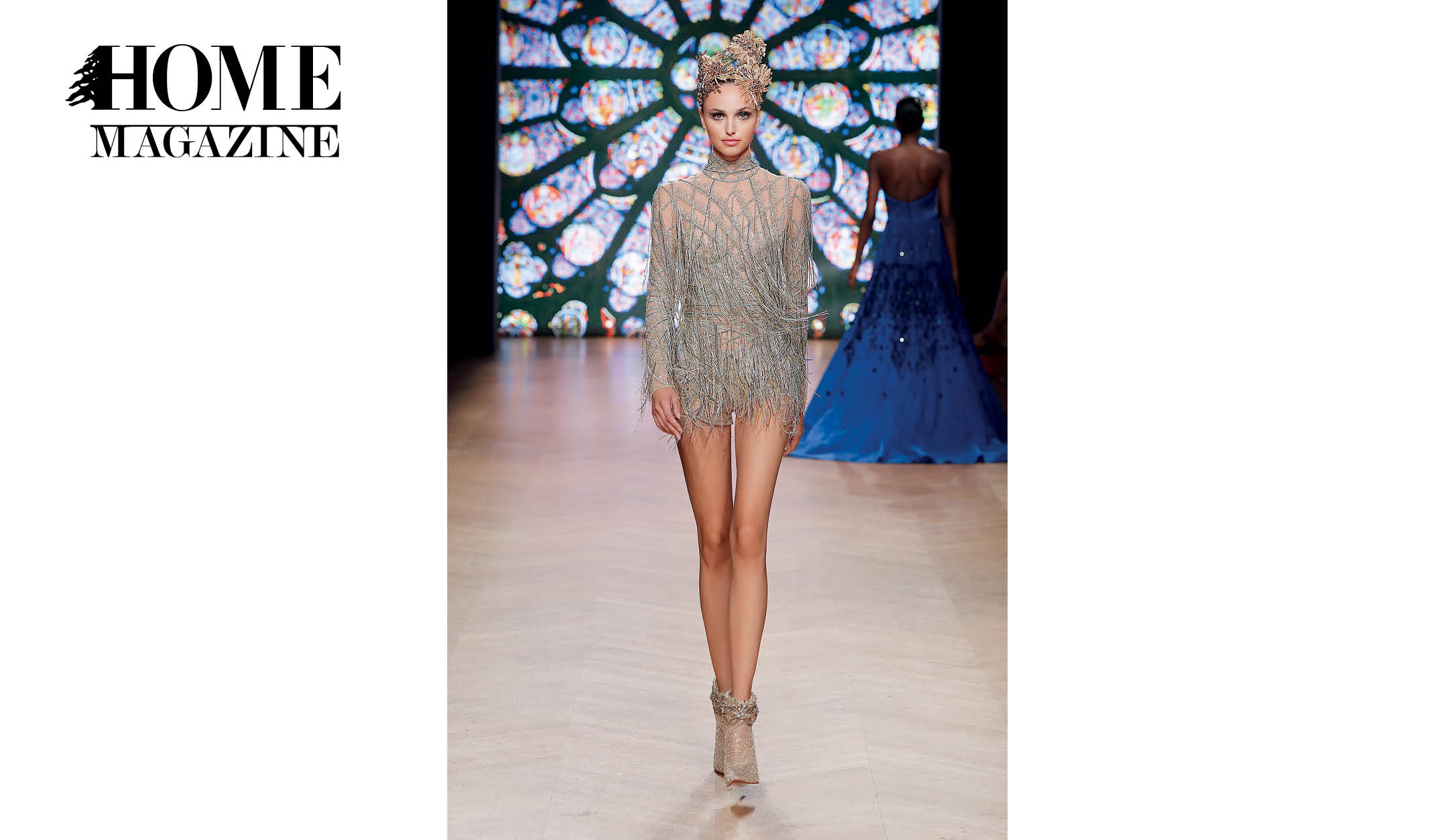 With garments made of handwoven ribbons and other complex couture materials and techniques, taking up to 600 hours to be conceptualized and manufactured, the collection tells a story inspired by the striking stained glass “narrative windows.”